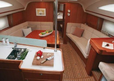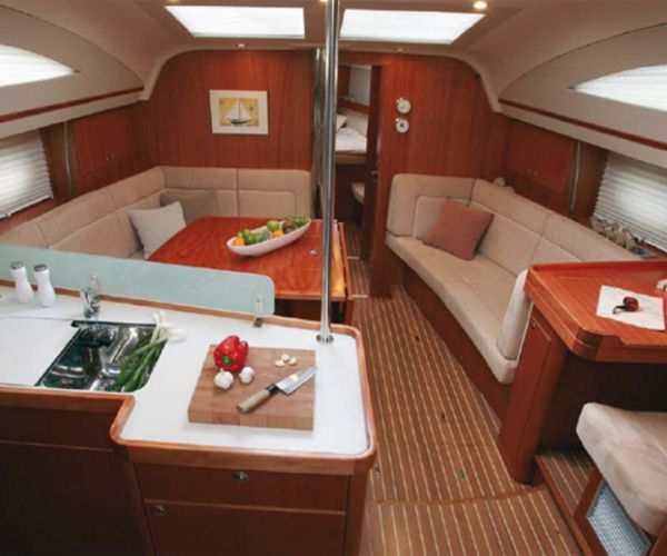 Pregătiți-vă să fiți impresionați de spațiul generos al interiorului: un salon luxos și luminos, alături de trei cabine duble rafinate, concepute pentru a oferi confort de top și intimitate.