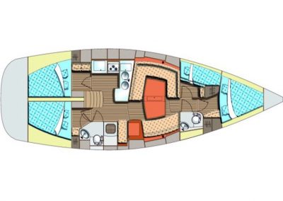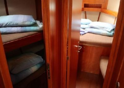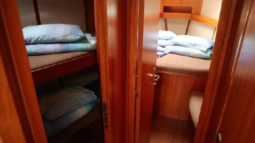 Velierul Santa Maria poate transporta maxim 12 persoane. 6 persoane pot inopta in cele trei cabine duble de dormit. La bord avevi toate condițiile necesare: 2 Băi cu apă curentă rece/caldă, Aragaz, Frigider, Aparat gheata, Duș în cockpit, Boxe bluetooth, Cafetiere.